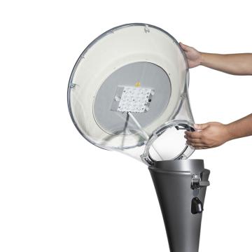 The design of the CALLA LED luminaire is based on the Futureproof concept. Opening the luminaire is entirely toolless, thanks to the hinge on the luminaire base. The electrical compartment, cabling and LED engine can also be serviced on-site without any tools.